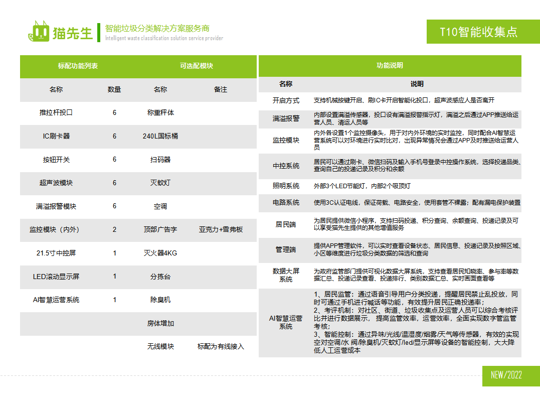 近期貓先生智能垃圾房在甘肅蘭州正式“上崗”,開始投入運行使用。垃圾房不僅外觀干凈美觀,還有很多智能化的功能。 垃圾房可以回收廚余垃圾、其他垃圾及可回收物。使用垃圾房只需要刷卡或按一下按鈕就可以直接